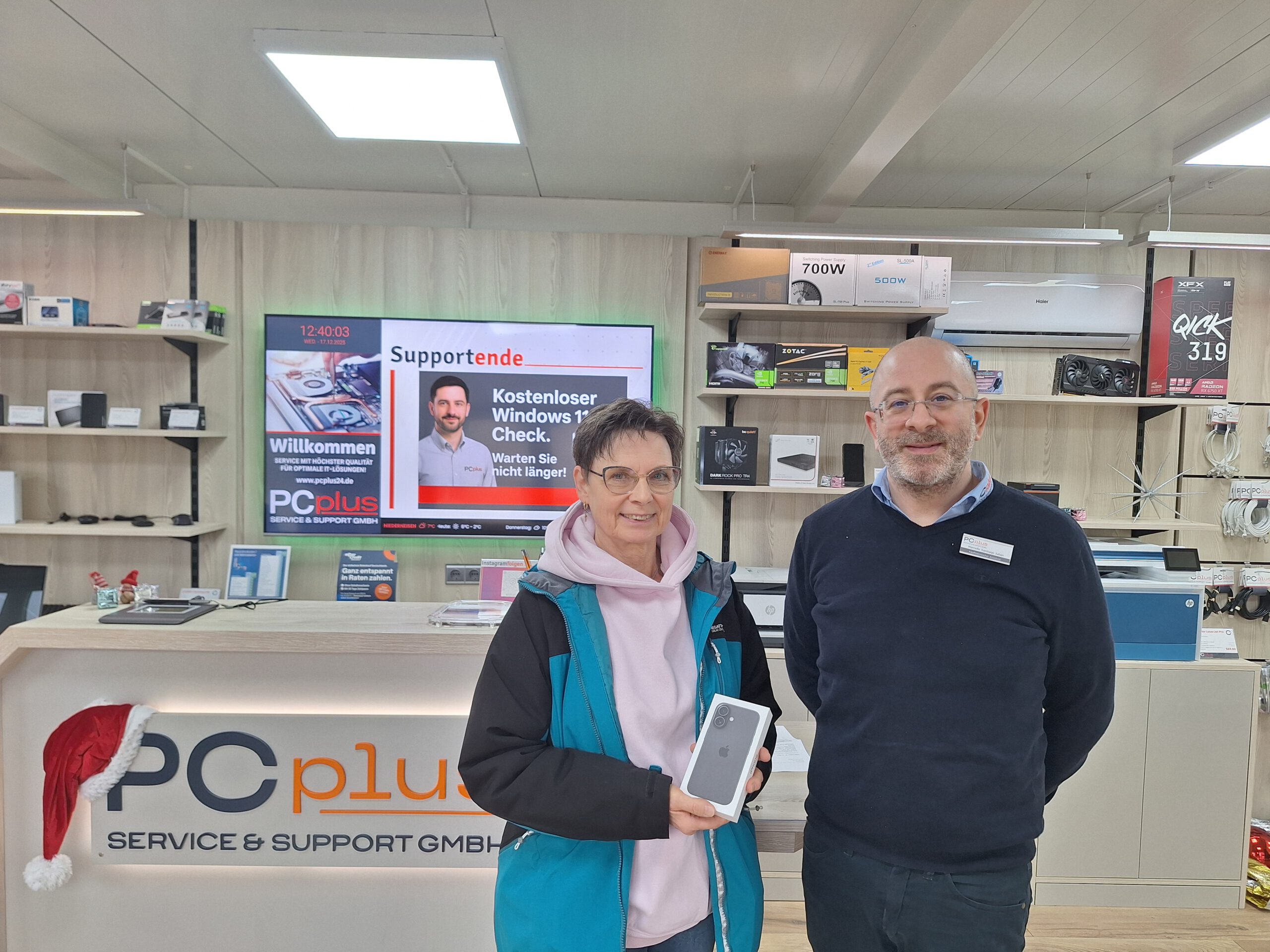 Bei der persönlichen Übergabe erhielt sie den Preis des Gewinnspiels – ein Apple iPhone.